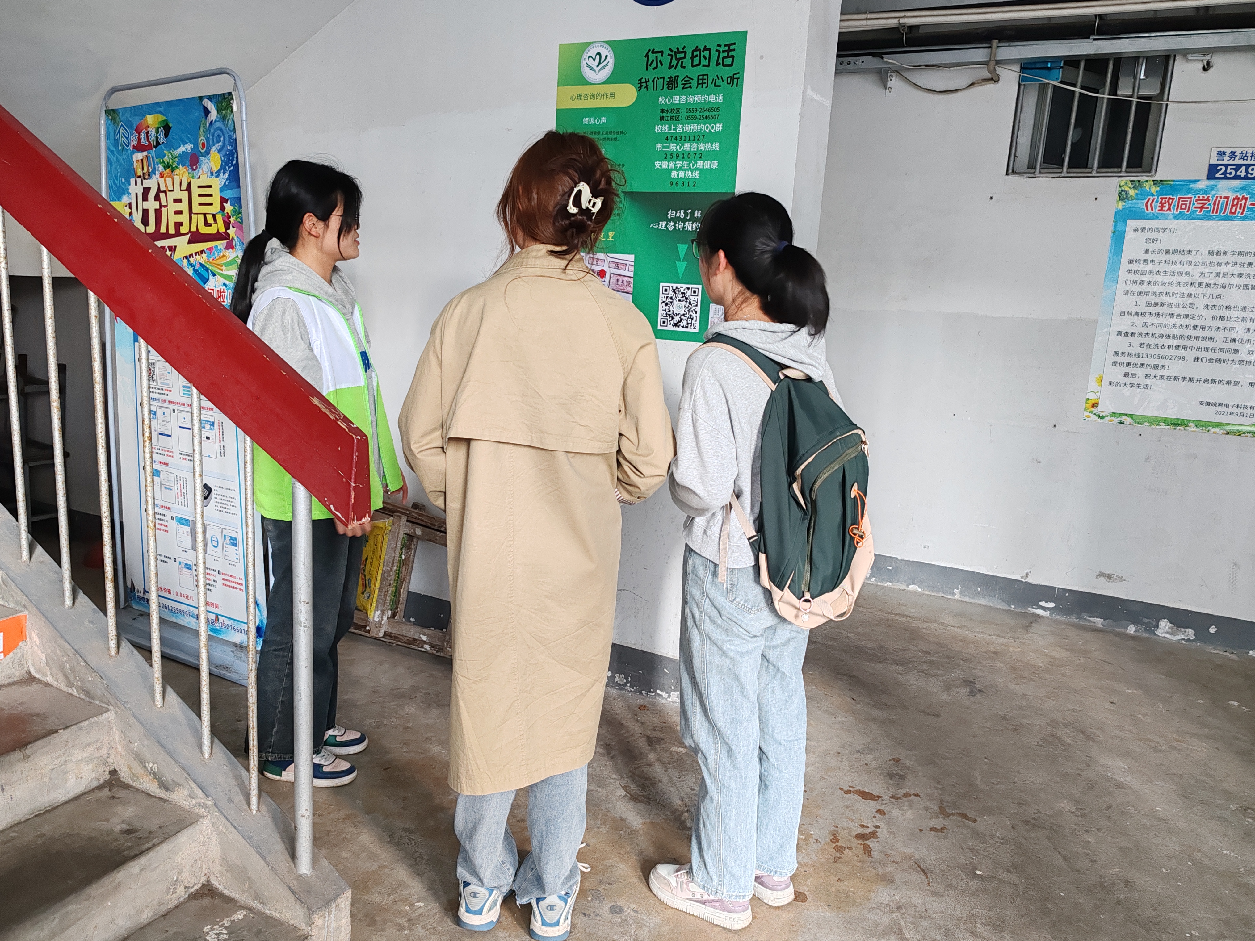 校学生工作助理和志愿者们走进每栋宿舍,张贴心理咨询宣传海报,介绍学校心理健康咨询相关知识,鼓励同学们积极参与心理健康的各项活动。