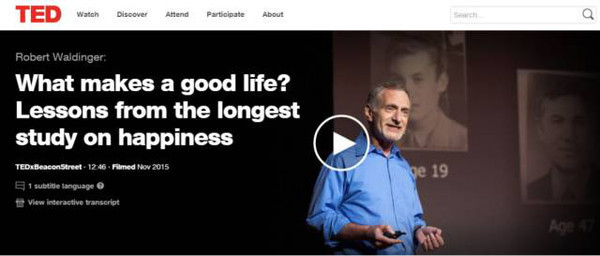 最后,让我们一起来聆听Robert Waldinger教授的演讲吧(TED演讲:幸福是什么?):